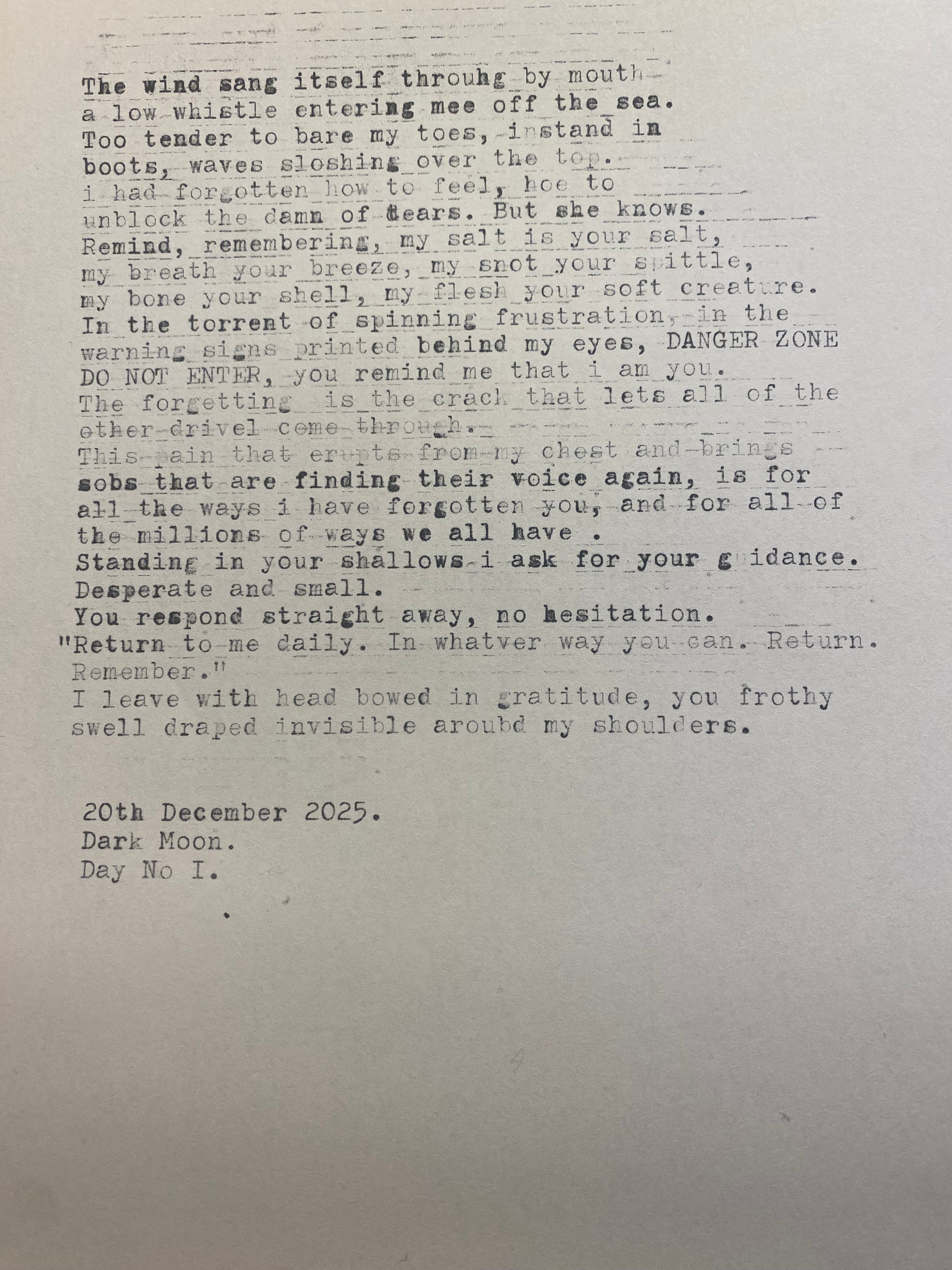 Typewritten Words No1: 20th December 2025